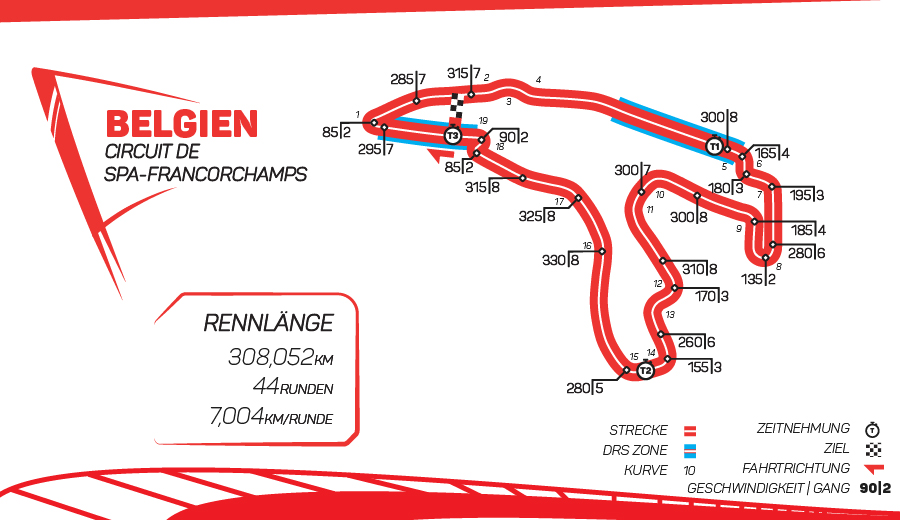 Rennstrecke: Circuit de Spa-Francorchamps Datum: 19.07.2026 Streckenlänge: 7,004 km Runden: 44 Distanz: 308,052 km